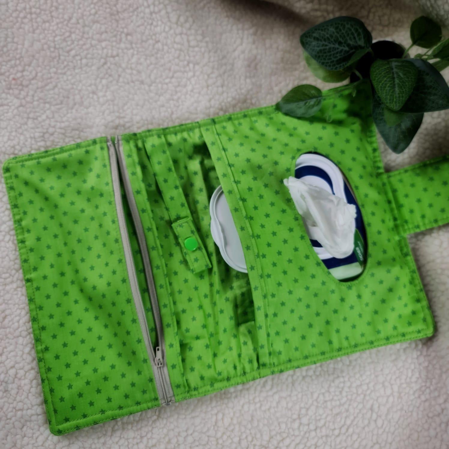 Dieser Stoff ist durch die Schaumstoffmitte stabil aber dennoch weich, er muss nicht verstärkt werden, franst nicht aus, ist bügelbar und lässt sich einfach mit einer Universalnadel vernähen auch mit mehreren Lagen.