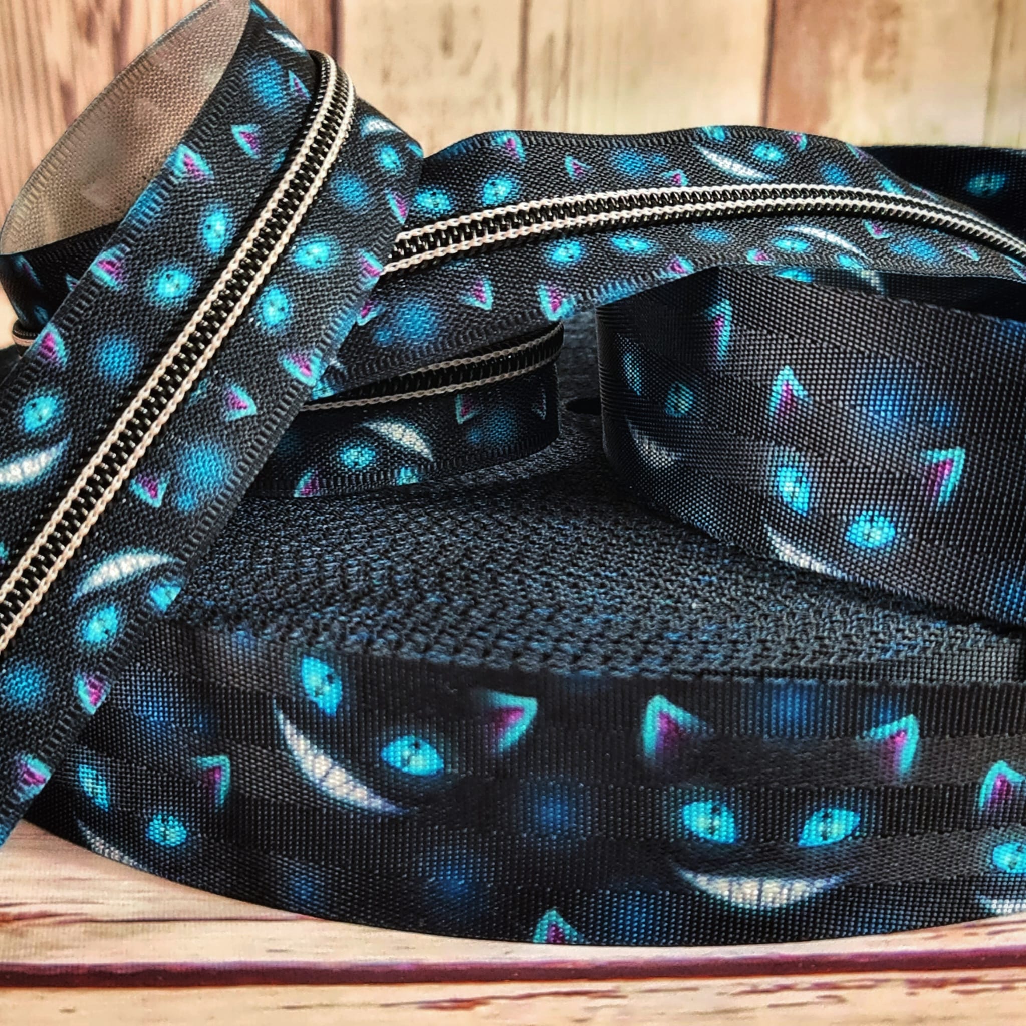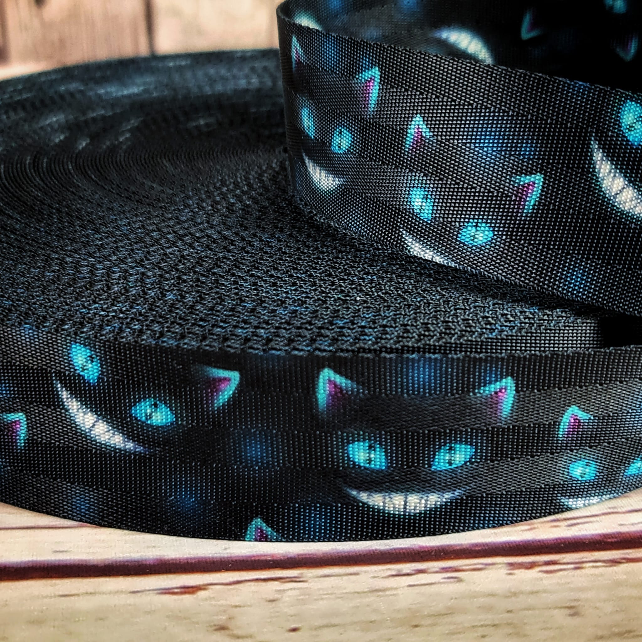 Gurtband | 40mm | beidseitig | Grinsekatze | schwarz