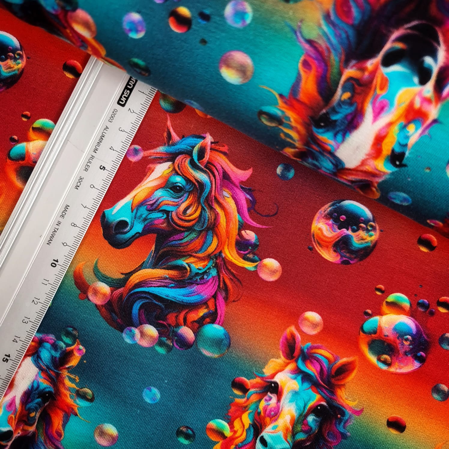 Sommersweat | French Terry | bedruckt | bunte Pferde | bunt