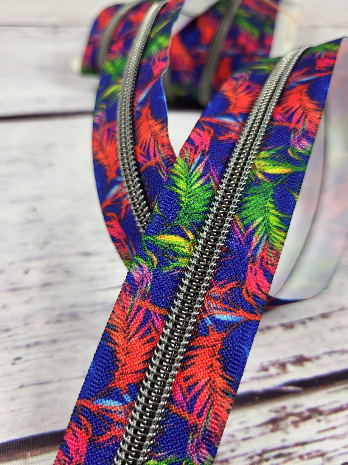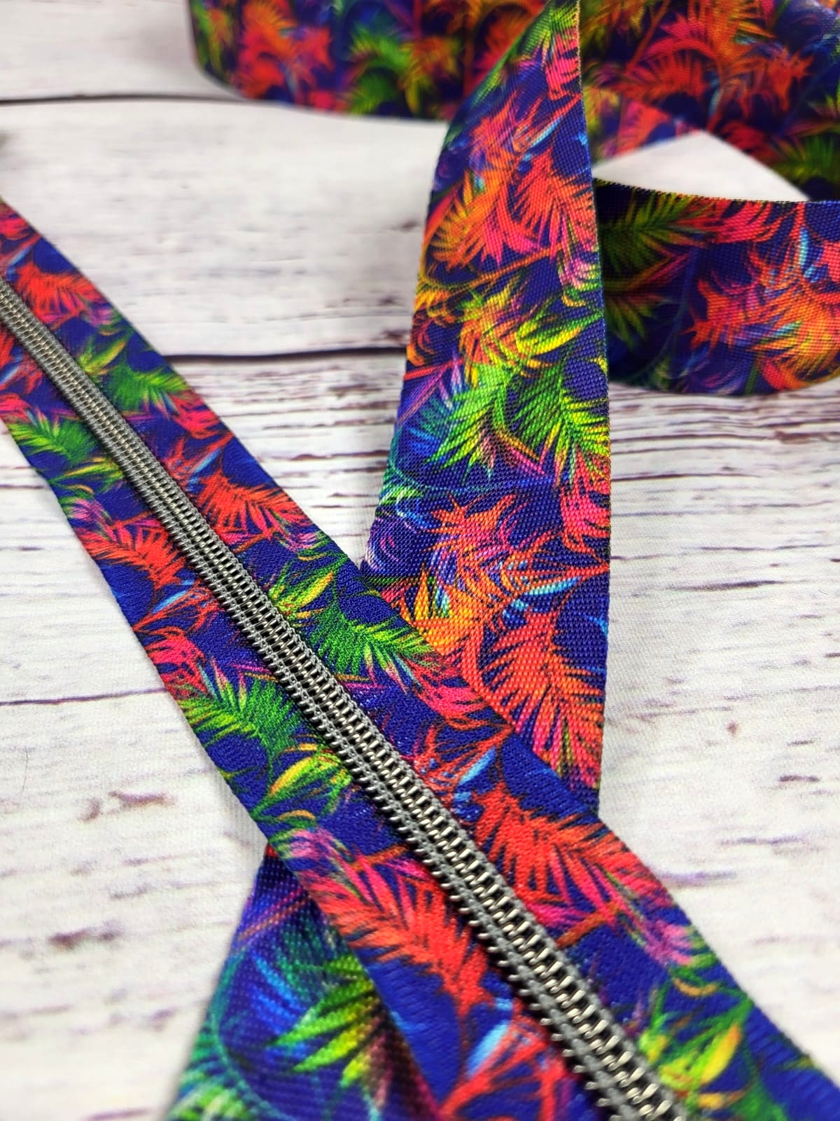 Nylon-Reißverschluss | endlos | Spirale 5mm | bunte Palmen | blau/bunt