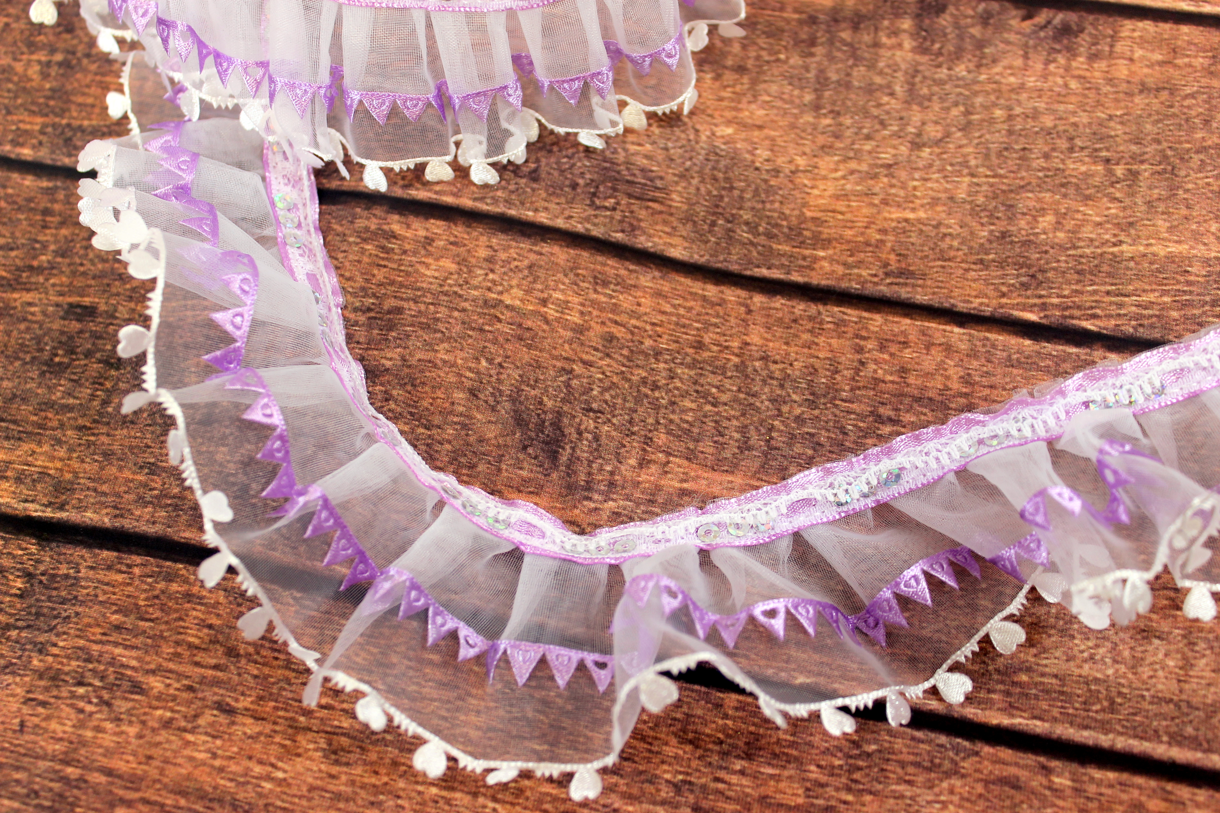 Rüschenband | LOVE | 5cm | lila/weiss/silber/Herzen